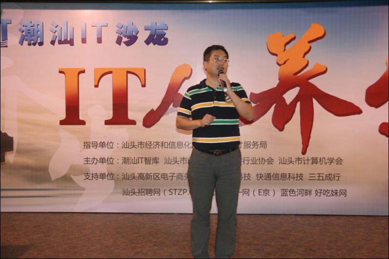 IT人不仅是新信息、新事物的引领者,也是科学健康生活的倡导者。但现今很多IT业职业病却困扰着很多IT人,直接影响了大家工作的状态与情绪。此次IT沙龙的主题正是“IT人的养生”。活动邀请了心理辅导师陈树平先生。陈先生现任汕头大学商学院MBA校外导师、心理辅导师,汕头市妇联特约讲师,并为汕头电视周报‘心理健康’专栏写稿,同时还在汕头电台大话江湖栏目里担任特约嘉宾。从陈老师 “一定看清三社会,一见只存三念头,一日只说三句话,一生只做三件事”的理念,也可看出陈老师的处事风格与养生理念。陈老师幽默风趣的演讲,也为大家带来了一场精彩的“养生”盛宴。