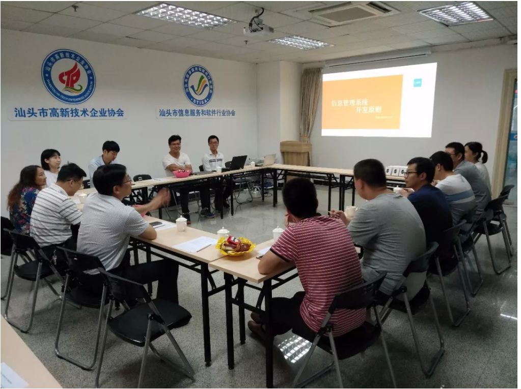 协会2家企业获奖励!汕头市人民政府关于奖励荣获第十九届中国专利奖和2017年广东专利奖企业的决定 协会理事单位广东金明精机股份有限公司“同心套筒式多层共挤吹膜机头”项目、会员单位广东正迪科技股份有限公司“一种在线加纤维覆膜的防伪标签制作装置及方法”项目均获得第十九届中国专利优秀奖和2017年广东省专利奖! 工信部电子五所专家赴协会理事单位广东正超电气有限公司、广东金明精机股份有限公司调研 5月8日,由工信部电子五所认证中心培训部副主任李旭波带队的专家组以及由电子五所刘远国老师带队的专家组分别赴协会理事单位广东正超电气有限公司、广东金明精机股份有限公司调研。 协会副会长单位广东天亿马信息产业股份有限公司石峰区网格化信息服务管理平台取得显著成效,获株洲市委书记高度肯定 潮汕IT精英俱乐部第三十期分享会成功举办 5月26日下午,由协会主办的潮汕IT精英俱乐部第二十九期分享会在电信实业大厦2楼举办。 详情请点击图片↑了解 全国科技工作者日 ▏市科协领导莅临协会进行指导交流 今天是第三个“全国科技工作者日”。为庆祝2019年“全国科技工作者日”,全面贯彻落实习近平新时代中国特色社会主义思想和党的十九大精神,5月30日下午,市科协党组书记洪祥武、市科协主席马清亮带队赴协会指导交流,协会会长刘向民热情接待了来访领导一行。 详情请点击图片↑了解