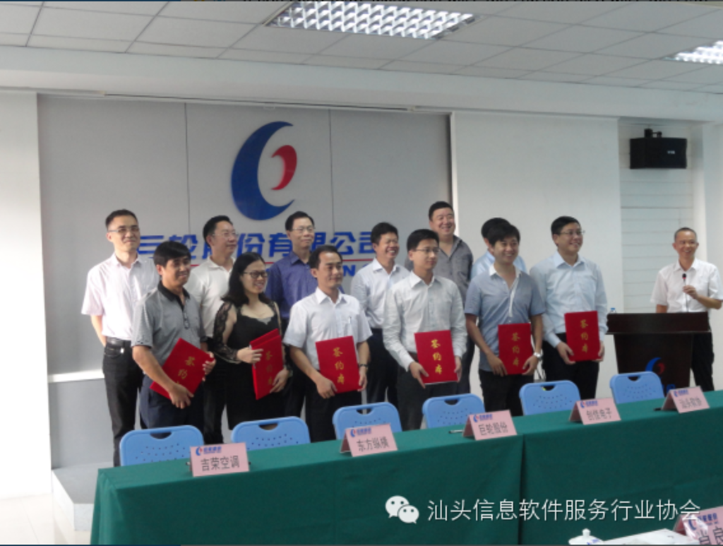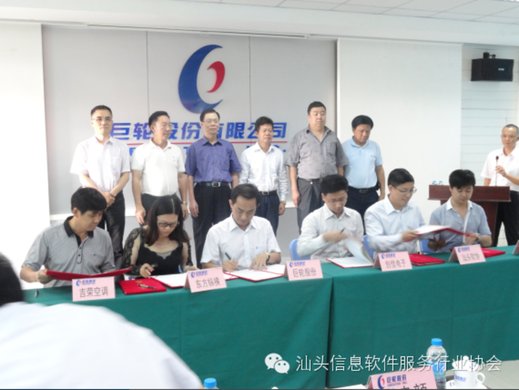 2014年10月31日下午,“粤东五市两化融合对接会”在巨轮股份龙港路厂区隆重召开。在省经信委信息化推进处肖良颜处长等领导带领下,汕头市、揭阳市、潮州市、梅州市、汕尾市经信局相关负责人出席,会议由揭阳市经信局主持。汕头市信息服务和软件行业协会作为十家“广东省信息化和工业化融合管理体系贯标服务机构”之一参加了此次会议,并与3家传统企业签订了合作协议书。