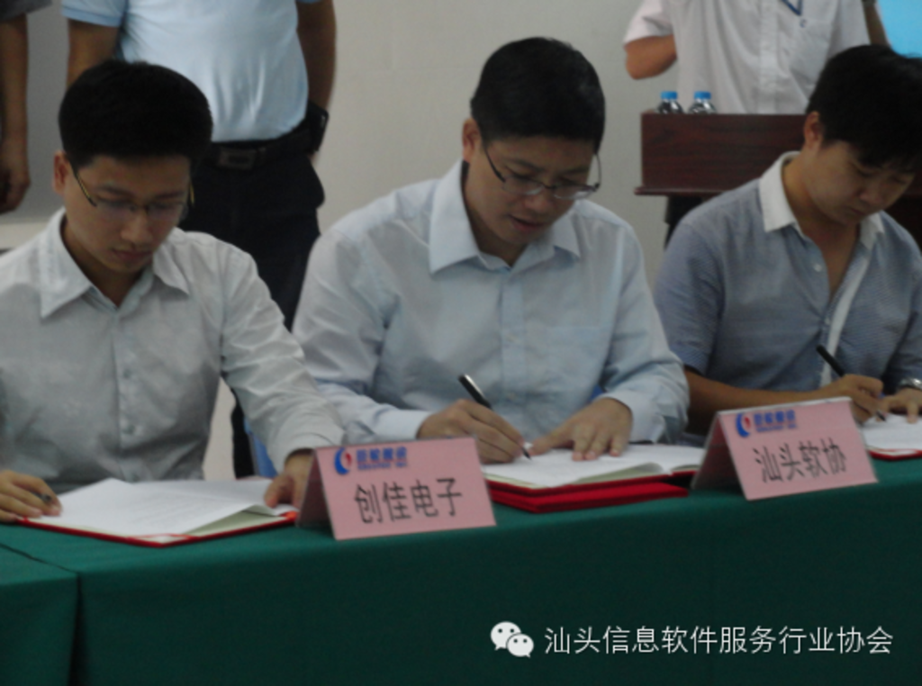 在此次的签约仪式上,我协会也与潮州市创佳电子有限公司、广东长城集团股份有限公司等签订了合作协议,就协助企业实施“两化”融合贯标达成协议。