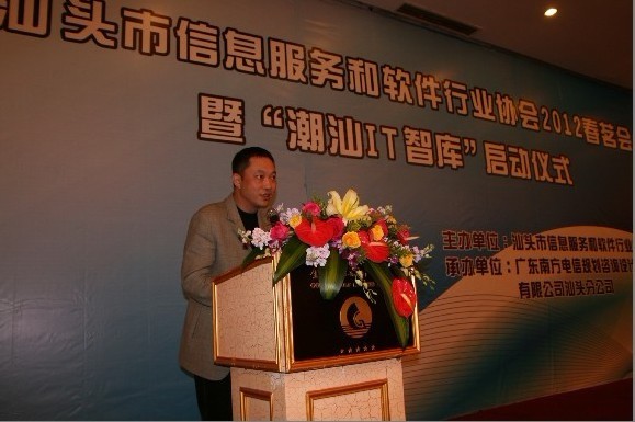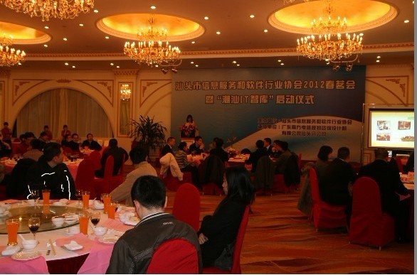 3月13日下午,在汕头金海湾大酒店华丽宫举办“汕头市信息服务和软件行业协会2012年春茗会”暨“潮汕IT智库”工作启动仪式。此次活动由轮值会长单位广东南方电信规划咨询设计院有限公司汕头分公司承办,参加会议的有汕头市经信局、市科技局、市人社局、市民间组织管理局的各位领导以及相关部门负责同志,兄弟协会的代表,信息服务和软件行业协会副会长、理事、会员代表共100多人。