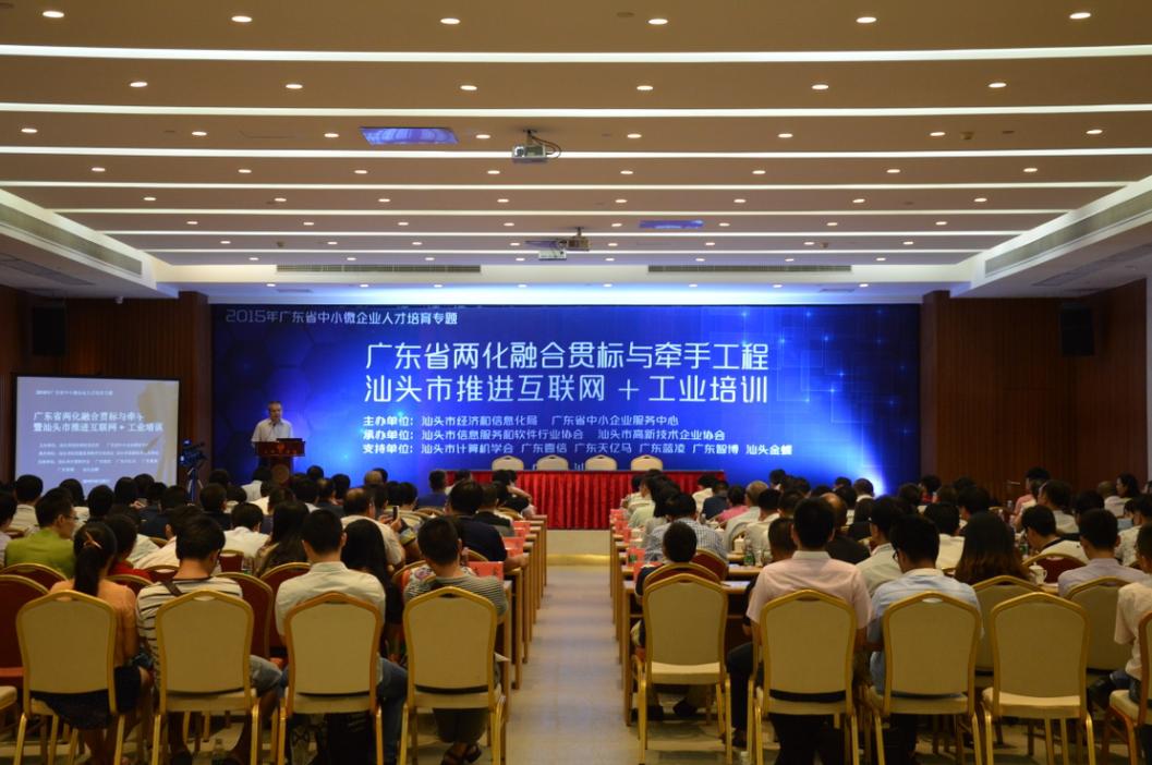 为贯彻国家互联网+行动计划、“中国制造2025”的战略部署,加快推进我市信息化与工业化深度融合和推动产业转型升级,由广东省中小企业服务中心、汕头市经济和信息化局共同主办,汕头市信息服务和软件行业协会、汕头市高新技术企业协会承办的“广东省两化融合贯标与牵手工程暨汕头市推进互联网+工业培训”于8月25日在市迎宾馆成功举行。本次培训班邀请到省、市相关行局领导出席。全市信息技术服务企业、传统企业代表共170余人参加了本次培训。
