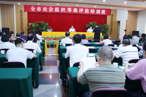 在本次培训班上,张局长深入分析了我市社会组织等级评估工作形势任务。开展社会组织等级评估工作,必须摆到各个社会组织的重要议事日程上来,进一步统一思想,充分认识开展社会组织等级评估的重要意义,注重学习研究,全面把握评估工作流程。最后张局长强调开展社会组织评估工作,是贯彻落实市委《关于加强社会建设的决定》的具体行动,也是加强我市社会建设和社会组织规范管理,建立社会组织科学发展长效机制的一项战略性任务,每个社会组织都要高度重视社会组织等级评估工作,统一思想,制定方案措施,加大评估投入,健全秘书处的建设,加强协调沟通,加大宣传力度,确保社会组织等级评估工作顺利进行。