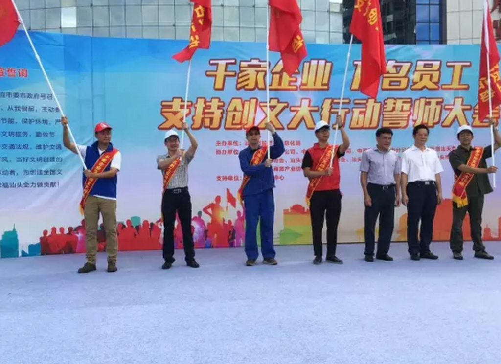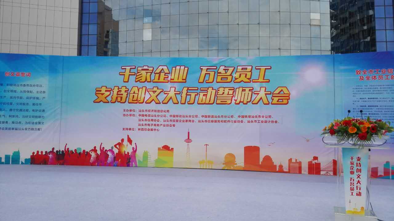 昨天上午,由汕头市信息服务和软件行业协会协办的“千家企业万名员工创文在行动“誓师大会在林百欣会展中心成功举办。汕头市副市长林依民、市委常委周镇松、市政府副秘书长陈汉雄、市经信局局长陈胜全等市领导出席活动,全市一百多家企业和协会的创文志愿者参加了活动,并举行了创文签名誓师仪式。