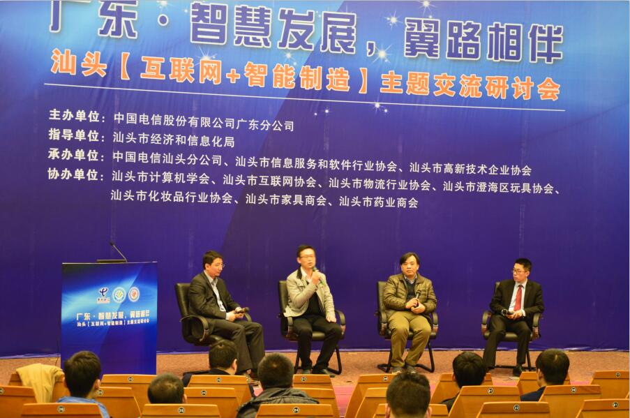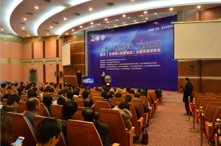 为贯彻国家互联网+行动计划、“中国制造2025”的战略部署,加快推进我市信息化与工业化深度融合和推动产业转型升级,由汕头市信息服务和软件行业协会联合中国电信股份有限汕头分公司共同承办的“2016广东 • 智慧发展,翼路相伴”—汕头互联网+智能制造交流研讨会于2月26日在汕头粤东信息大厦首层隆重举行。汕头市经济和信息化局局长陈胜全、副局长李俊等有关领导出席了大会。