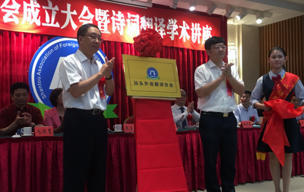 5月8日,汕头外语翻译协会成立大会暨诗词翻译学术讲座在汕头迎宾馆隆重举行。市领导张应杰、马逸丽,汕头大学执行校长顾佩华,省翻译协会副会长屈伸、李杰出席活动。
