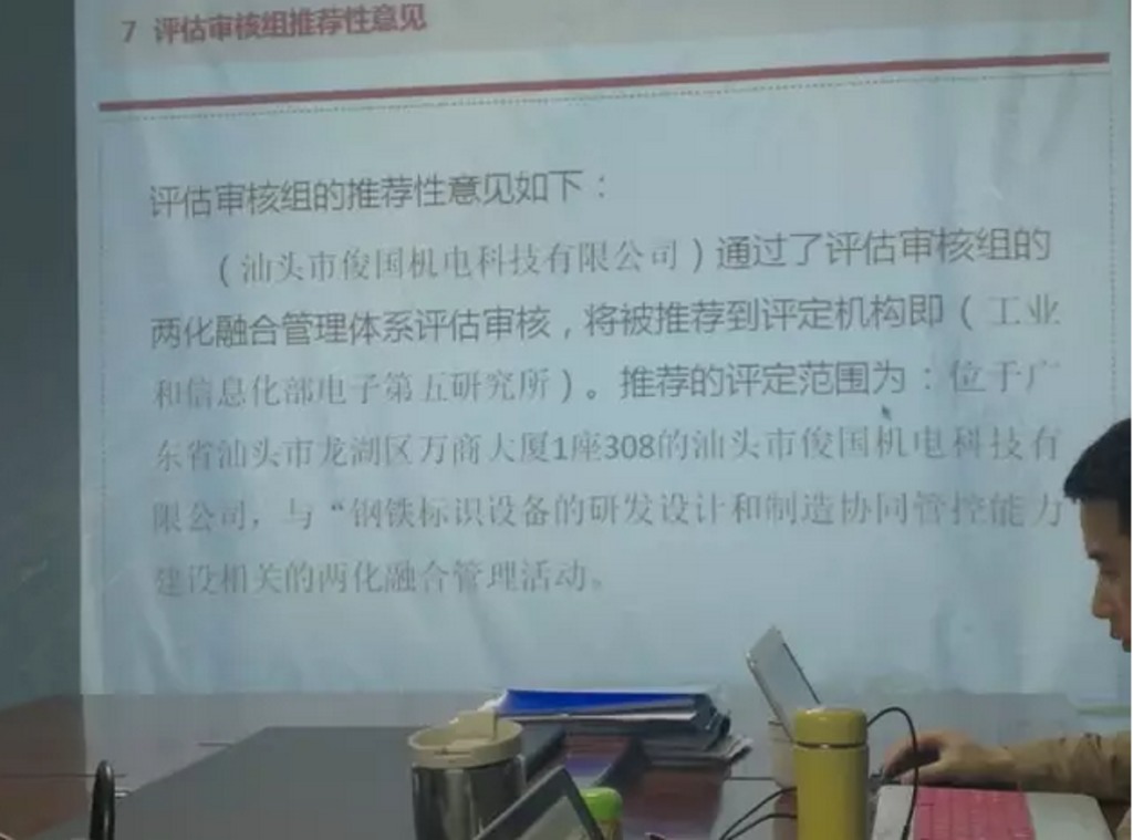 汕头市俊国机电科技有限公司顺利通过两化融合管理体系第二阶段审核