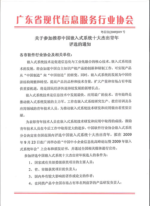 评选中国嵌入式系统十大杰出青年的通知