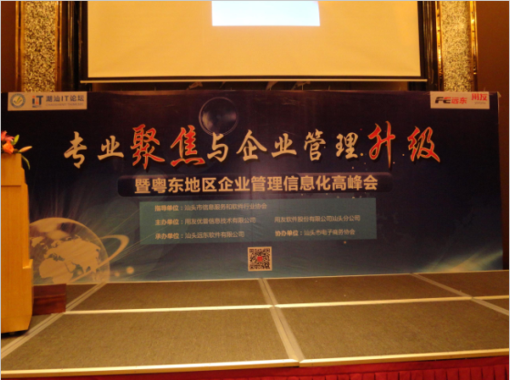 由潮汕IT智库运营平台、汕头市信息服务和软件行业协会、用友软件、华为技术联合举办的潮汕IT智库系列活动,于2014年4月28日下午在汕头龙光喜来登酒店3楼宴会厅隆重举行,此次活动得到汕头、潮州、揭阳等地区的IT相关行业协会以及汕头第一网(E京)、蓝色河畔等门户网的大力支持并进行现场报道。