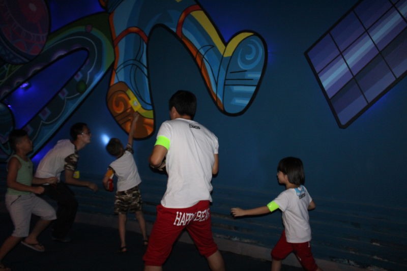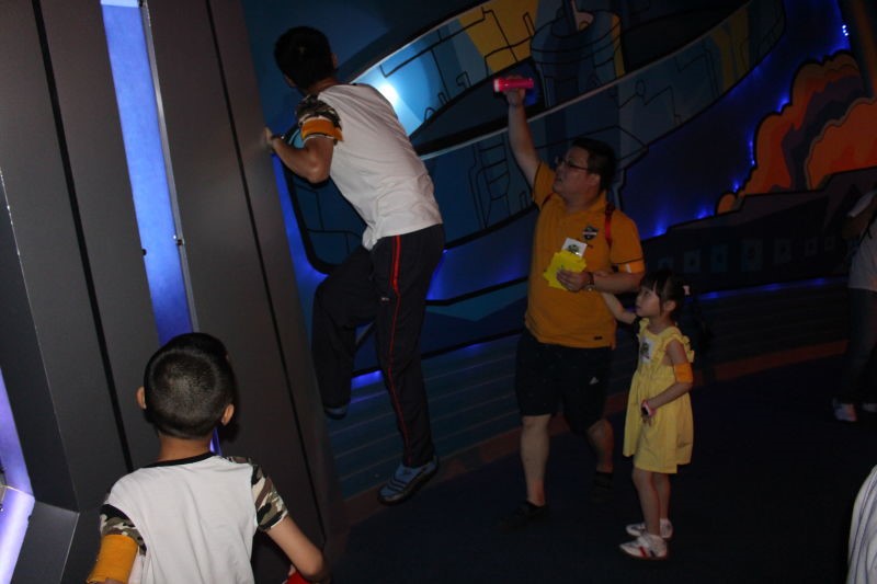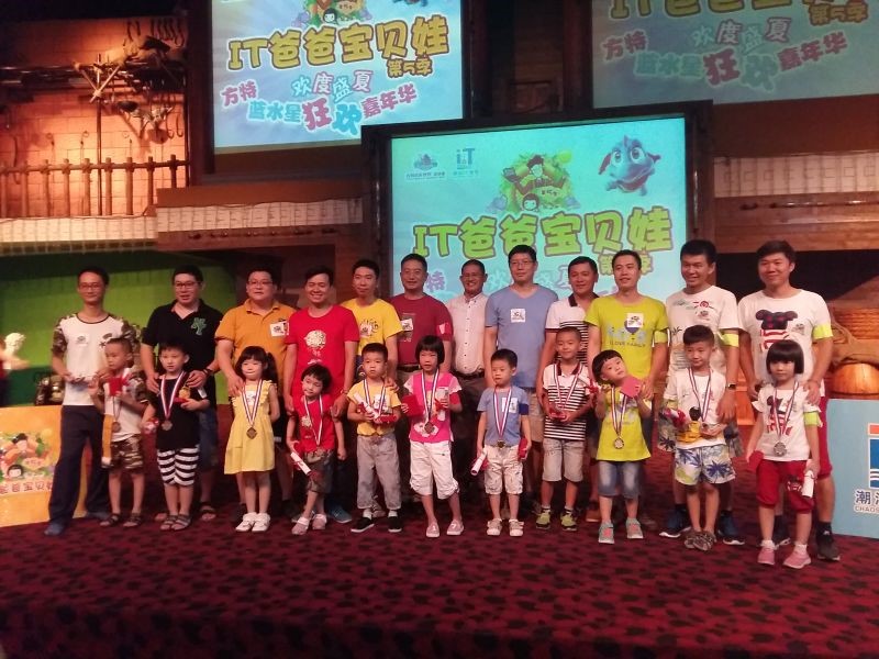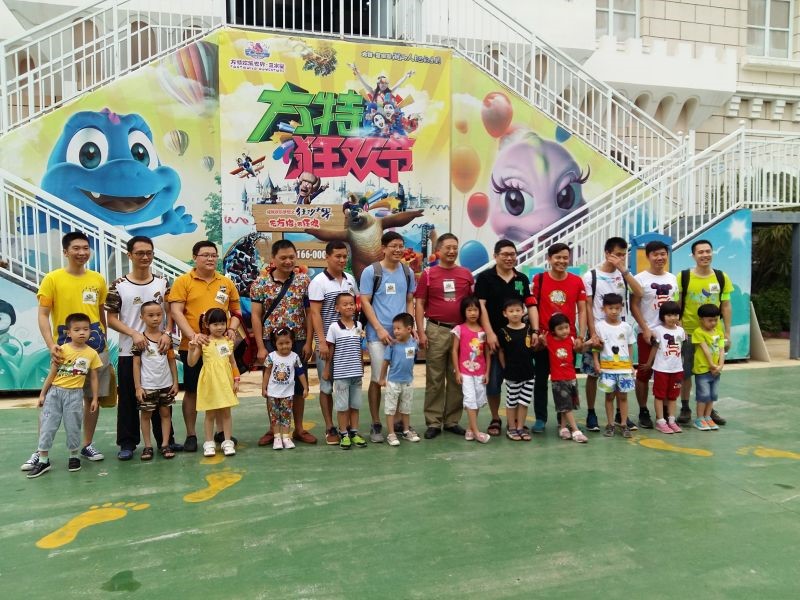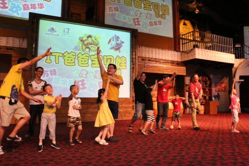 参加活动的主角是来自潮汕IT界的十二位行业精英,他们放下高压繁复的工作,一改往日沉重精干的模样,带着自己的宝贝娃们轻装上阵。活动采用团队合作和环节积分的形式,十二个组合分成红、黄、绿、蓝四队,首先进入神秘科幻的太空山寻宝,在规定时间内寻找对应颜色的旗帜,争获更多的红花积分;爸爸带着孩子,一起观看了4D电影《飞越极限》,体验了一把感官刺激,经受了胆量考验;随后穿越欢乐宫的镜子迷宫进入3D画廊,寻找到抽取的背景墙,由萌娃们完成拍拍秀任务。晚餐时分,前两关获得红花最多的绿队获得加餐奖励,其他团队只吃简餐,尽管如此,大家都吃得津津有味,并吃完各自的饭菜和汤,全部实现“光盘”目标。
