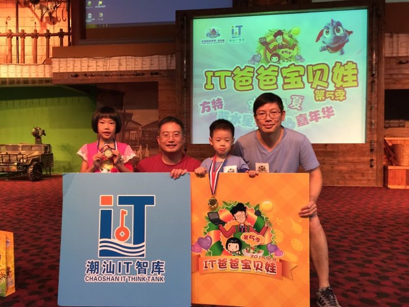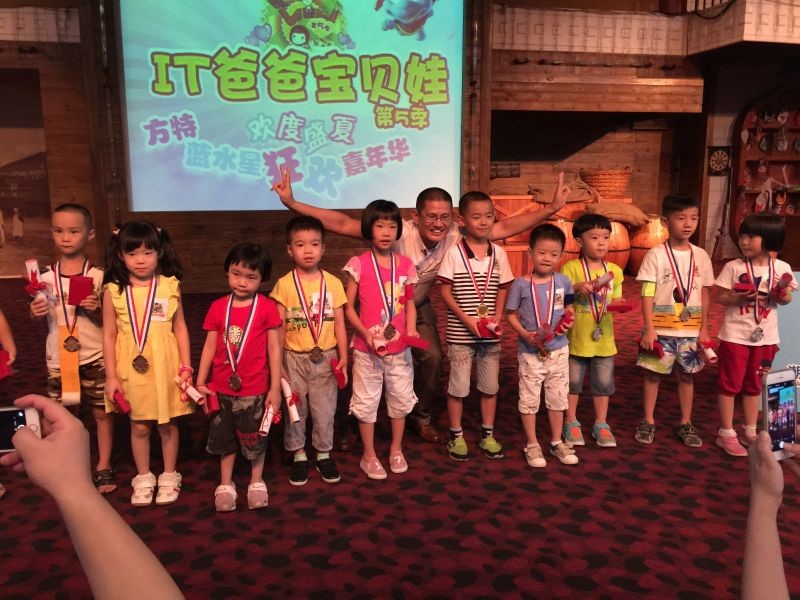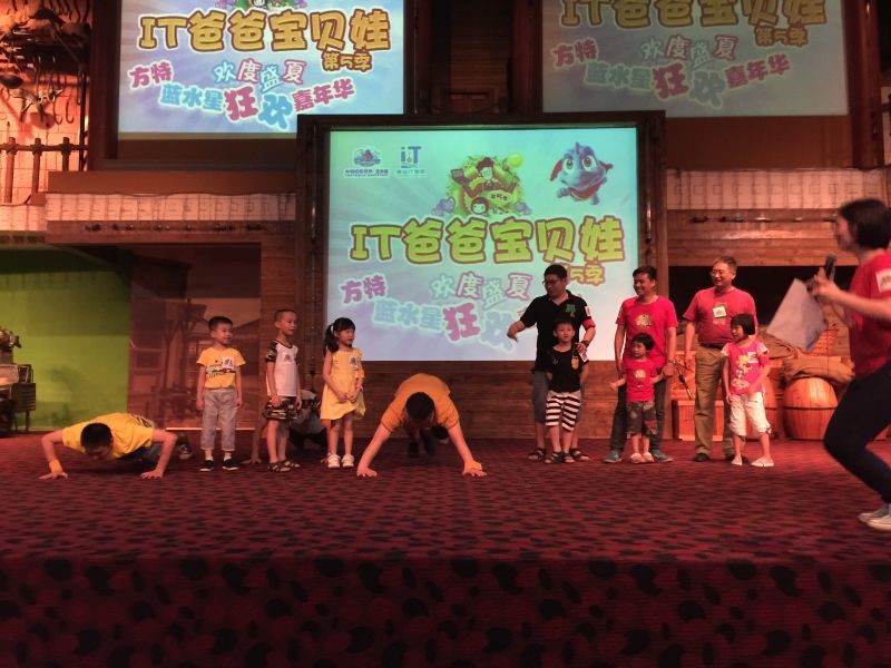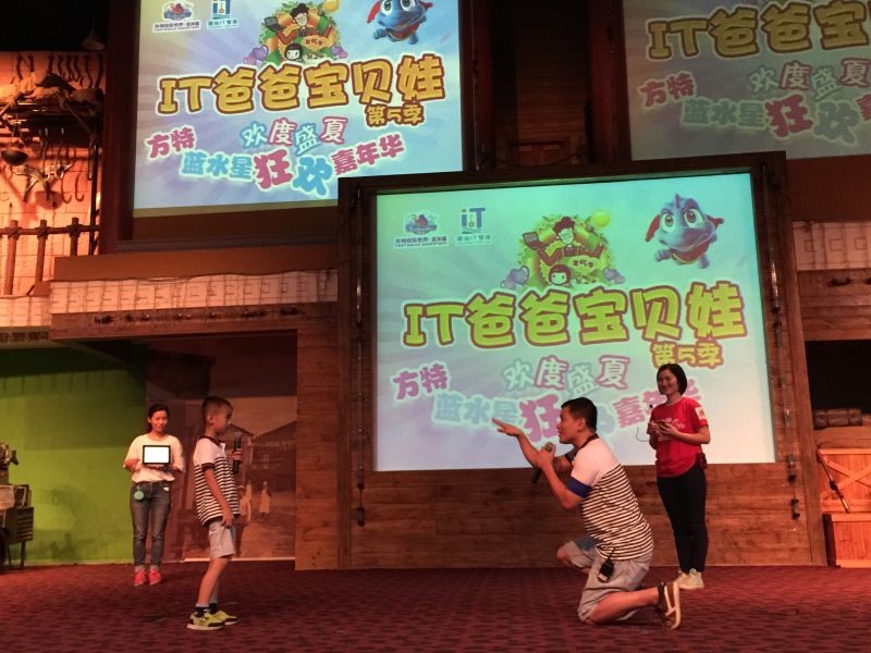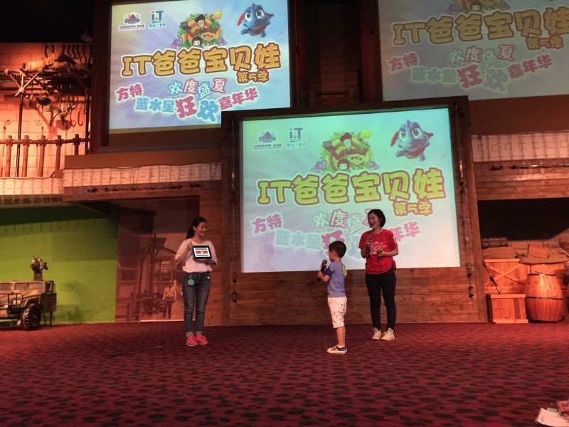 8月8日,民间“爸爸节”,下午四点,天上飘着细雨,游人渐退的方特•蓝水星游乐园再次沸腾起来,一场别开生面的亲子活动——“IT爸爸宝贝娃(第五季)”在这里拉开序幕。这是一场集亲子、科普、竞赛、娱乐于一体的活动,由潮汕IT智库、汕头市信息服务和软件行业协会、汕头市计算机学会、三五成行旅游网亲子机构、方特欢乐世界等单位联合举办。