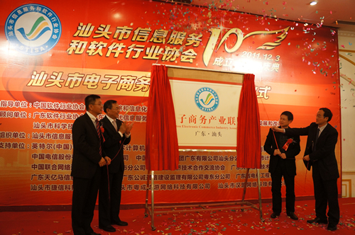 作为全国信息化五十强的汕头市在上个月荣获“国家电子商务示范城市”金字招牌;刚刚结束的汕头市第十次党代会,围绕幸福汕头的战略目标,提出了大力推进经济发展方式转变等战略举措,要求加快推进电子商务建设,全力打造“汕头数据特区”,抢占现代服务业产业链高端地位,一系列利好政策的出台,令汕头的IT企业欢欣鼓舞,运筹帷幄。12月3日,汕头市信息服务和软件行业协会迎来十周年庆典,广东省信息化与工业化融合牵手工程“百场千企”巡回交流系列活动汕头站启动仪式暨汕头市首届云计算产业论坛、汕头市电子商务产业联盟揭牌等一系列活动在在汕头市金海湾大酒店隆重举行,来自国家、省信息化的专家学者与汕头400多家IT企业、软件企业、电子商务企业及中小企业的代表欢聚一堂,共贺协会十岁生日,共谋工业化信息化发展大计。