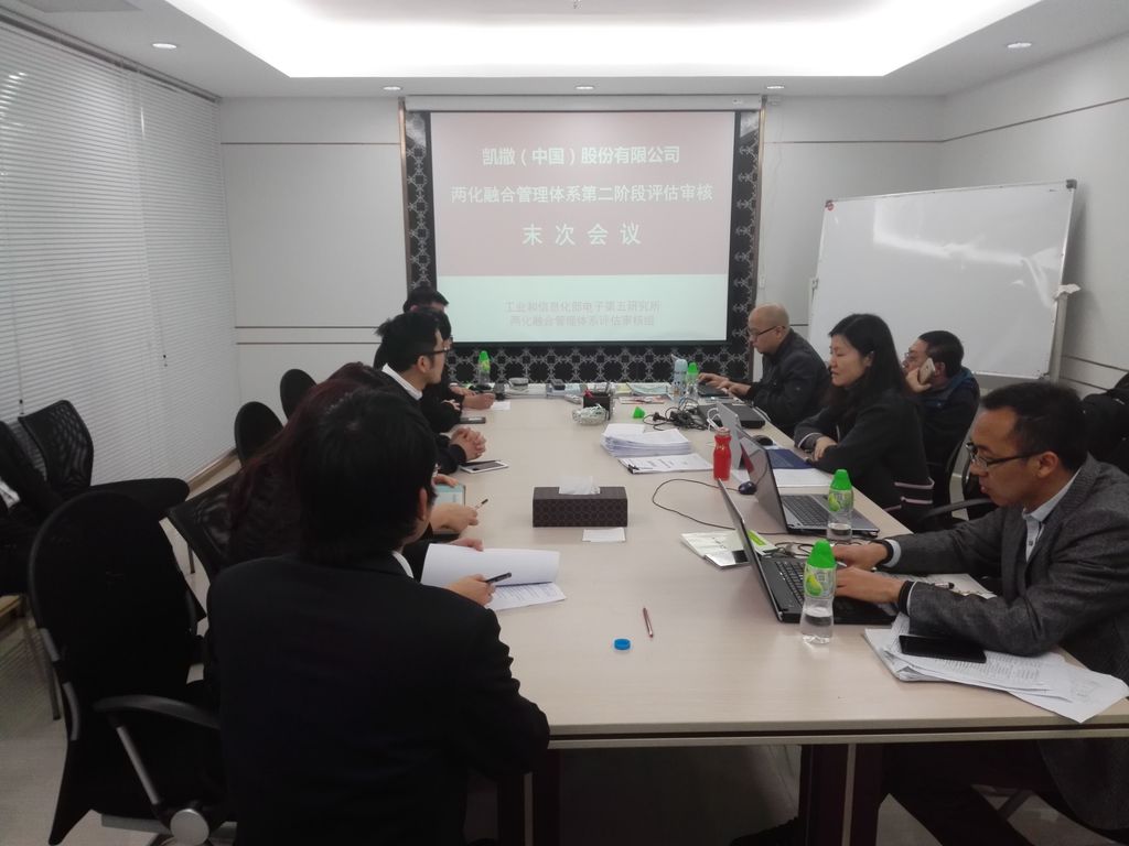 2015年12月30日、31日,工业和信息化部电子第五研究所“两化融合”管理体系评审组进驻凯撒(中国)股份有限公司进行“两化融合”管理体系贯标第二阶段评审。