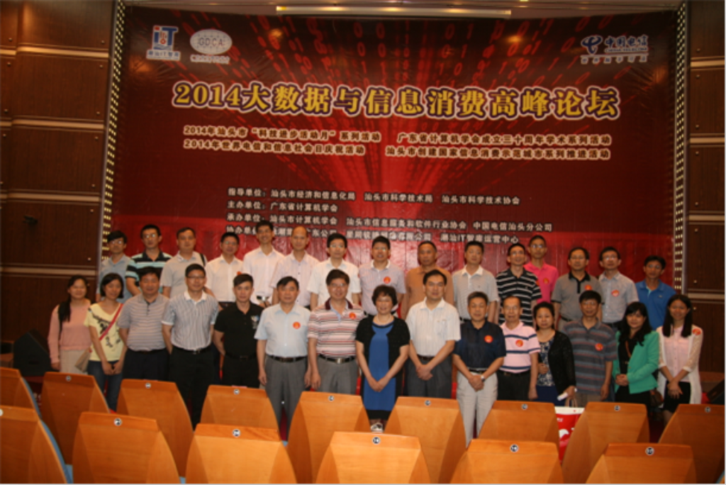 2014年5月16日下午,由广东省计算机学会主办,汕头市信息服务和软件行业协会、IT智库运营平台、汕头市计算机学会等共同协办的“2014大数据与信息消费高峰论坛暨广东省计算机学会秘书长联席会议”在汕头粤东信息大厦隆重举行。来自业界的专家学者、高端人才、企业代表300多人汇聚一堂,共同探讨大数据与信息消费的技术、应用和发展,推进向大数据产业转型升级,共商推进我市智慧城市、国家信息消费示范城市的建设步伐。